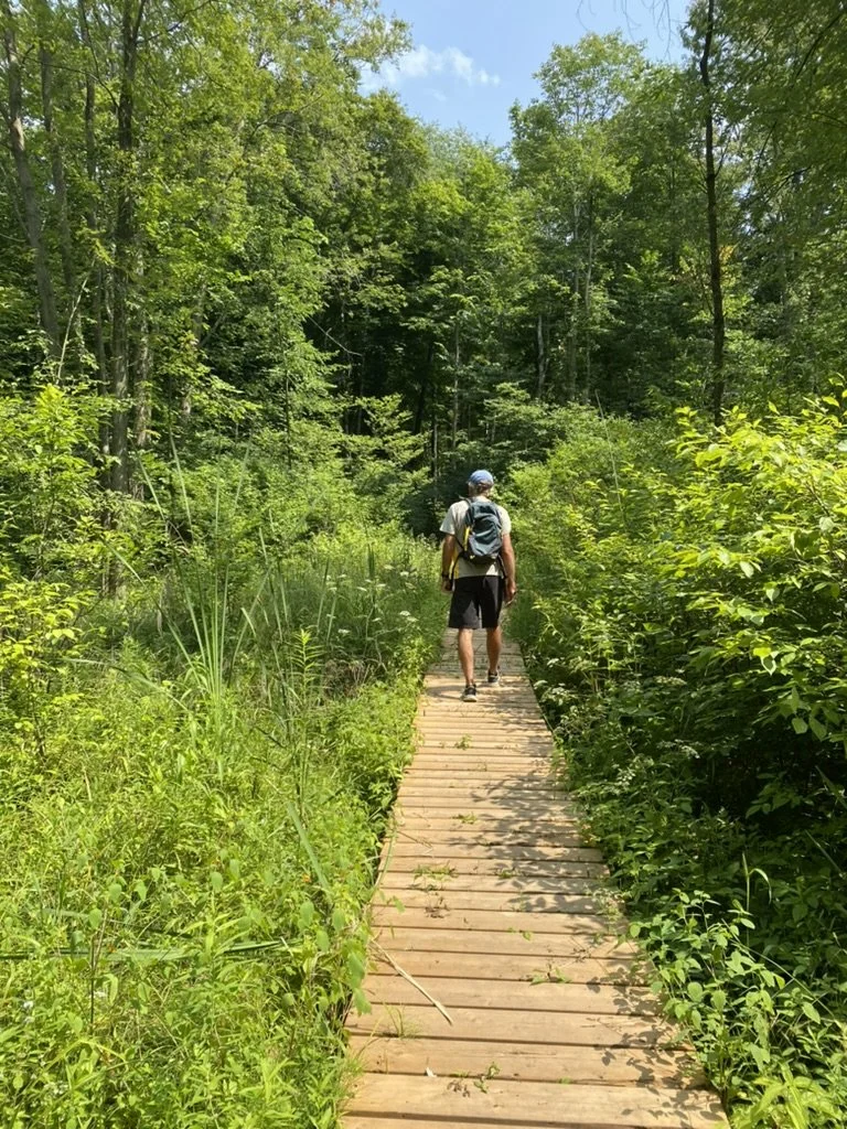 Our latest addition to the Foundation, Serenity Nature Reserve, was purchased in late 2023. During the month of February and most of April, a tireless group of volunteers from the Grand Bend Pickleball Club, volunteered to clear out tree-stumps, tumbled down thick bush, garbage and open up large swaths of land to build boardwalks over wet areas of the property to make the new trails accessible. We opened to the public in July 2024. The main trail is dust and chip that was built up by Creamer Construction, LLC, a local company. Our local Mike MacLean’s Home Hardware has been an exceptional partner in providing and delivering the outdoor wood for the boardwalks. The benches that are located throughout the property are from Mike MacLeans Home Hardware too.
